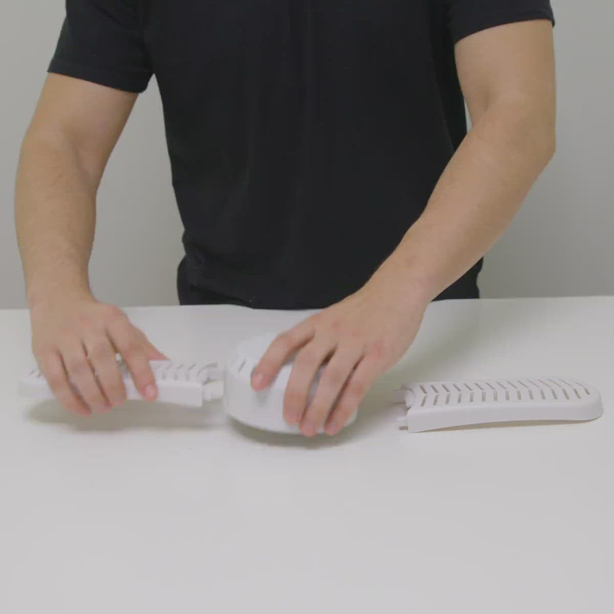 The shirt balloon has two zippers on each side. The more you unzip them, the wider and tighter the fit becomes – essential for removing wrinkles. If you need more length, adjust the upper telescopic rods.