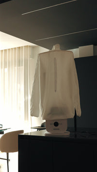 With the Automatic Ironing Machine 4.0, your damp or lightly misted clothes are perfectly dried and ironed in just 8–12 minutes. The adjustable shirt balloon and intuitive touch panel ensure a smooth, precise result for every fabric.